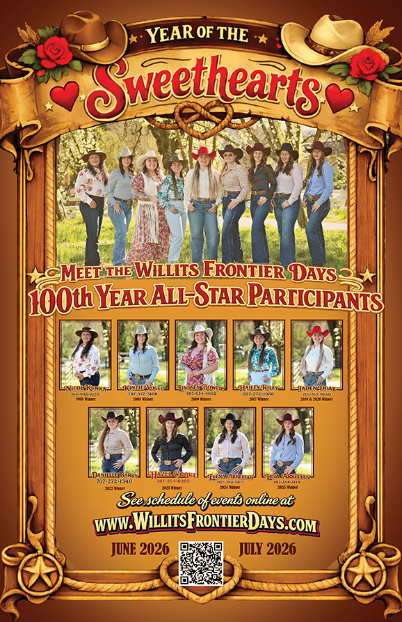 The winner then gets to enjoy participating in the year’s following events including riding in the Grand Entry for the California Cowboys Professional Rodeo Association and Junior Rodeos, riding in the parade, helping move cattle in the arena, and posing with winners of other contests, as well as making many other appearances during the festivities. The winner is also encouraged to attend other state and local events to represent Willits Frontier Days, including high school rodeos, CCPRA and other circuit rodeos, local fairs, school functions and more.